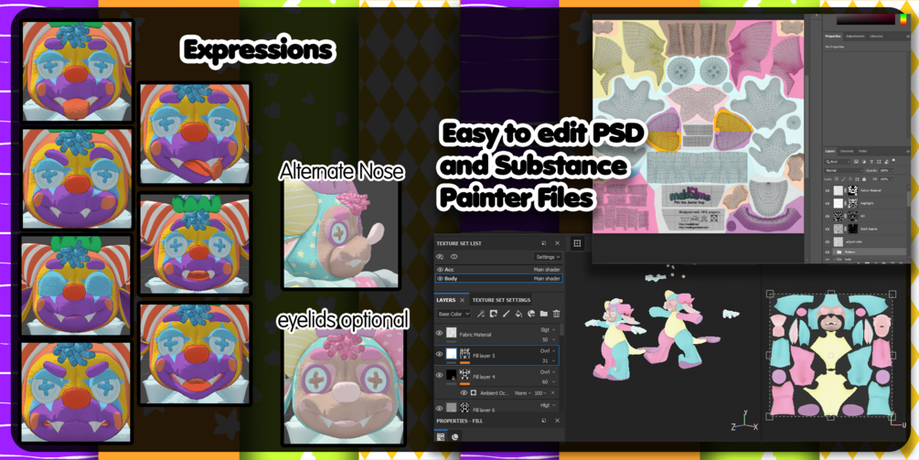 Unitypackage, Substance Painter 2020 file, Blend file, PSDs, textures